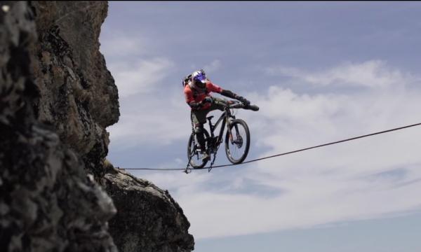 Велосипедист проехал по тросу над пропастью (ВИДЕО)