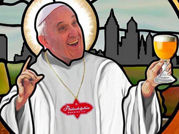 Новый сорт пива называется Holy Wooder, а на этикетке изображен понтифик в белой сутане и с бокалом пива в руке.