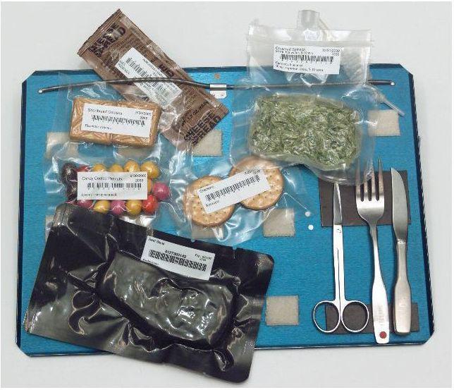Поднос для космонавтов оснащен множеством зажимов и магнитов, чтобы еда и приборы не разлетелись в невесомости.