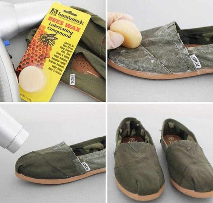 9 . Сделайте обувь непроницаемой. Хорошо промажьте ее натуральным пчелиным воском и посушите феном. Готово!