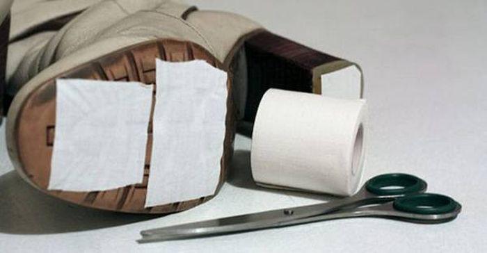 8. Чтобы в гололед уверенно держаться на ногах, наклейте на чистую сухую подошву медицинский тканевый пластырь.