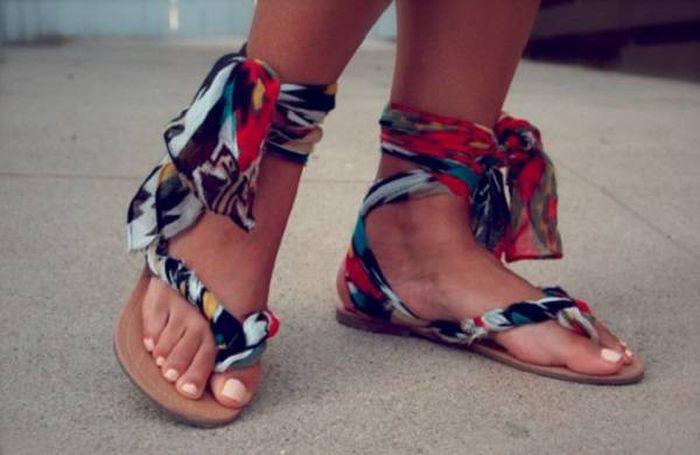 2. Сделать вьетнамки более оригинальными и удобными можно с помощью легкой ткани, как на фото.