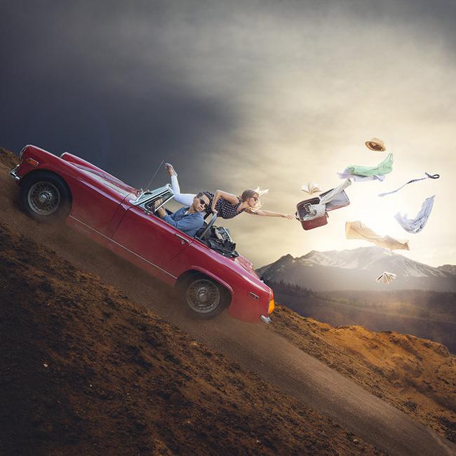 Летающие ретро-автомобили, непроходимые стены из тумана, окна в небесах и прочие метафорические визуальные образы определяют экспериментальные и сюрреалистичные работы концептуального фотографа.
