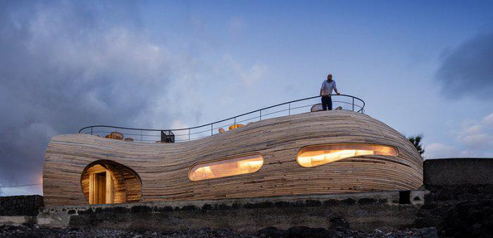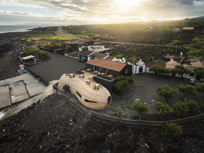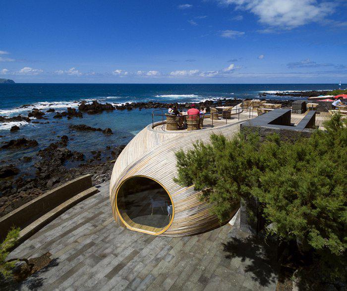 Здание является результатом регенеративной трансформации и расширения уже существующего старого здания. Разработчики придали ему мягкую округлую форму, мгновенно выделив здание кафе из общего рисунка городка.