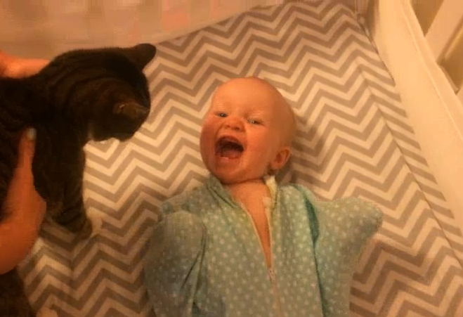 Реакция 10-месячного ребенка на появление кошки (ВИДЕО)