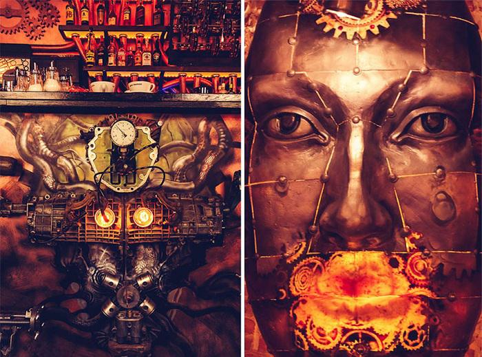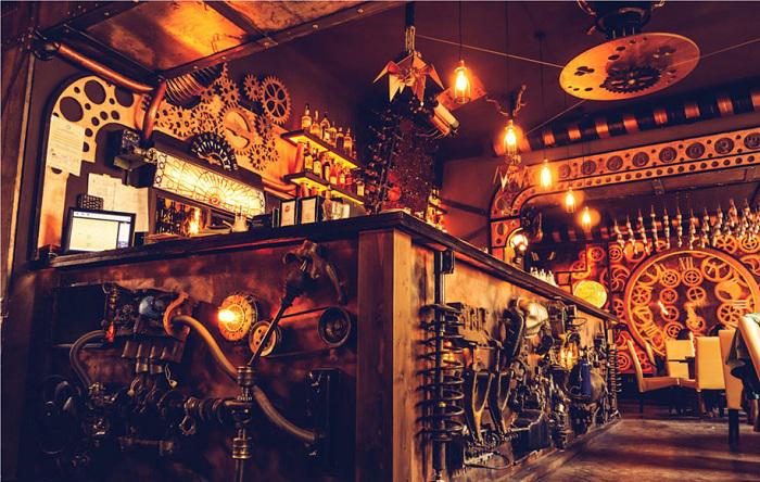 Вдохновляясь романами Жюля Верна и идеей путешествия во времени, румынские художники и дизайнеры потратили два года на оформление кафе-бара Enigma Café and Bar, расположенного в городе Клуж-Напока Нетрадиционный декор в стиле привлекает в заведение огромное количество жителей и гостей города.