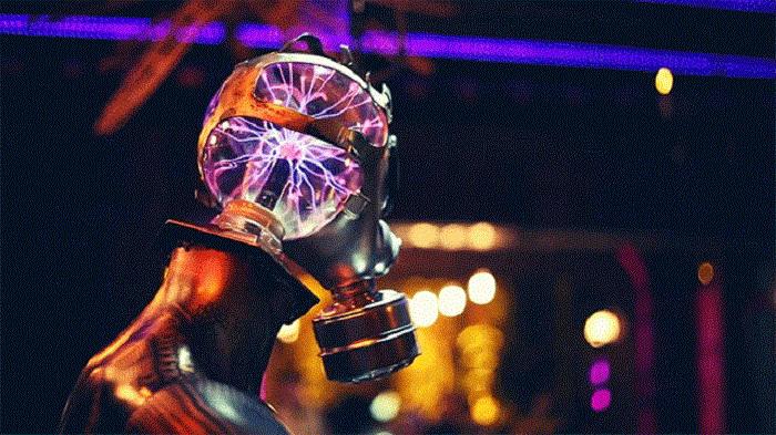 Со стороны кафе напоминает слаженный механизм, находящийся в постоянном движении. Вокруг посетителей вращаются стрелки, шестеренки, детали машин. Отдельного внимания заслуживает “велосипедист” - движущаяся механическая фигура в противогазе, которая постоянно крутит педали. Кажется, что этот робот находится во временной петле, а плазменный шар – это мысли в его голове.