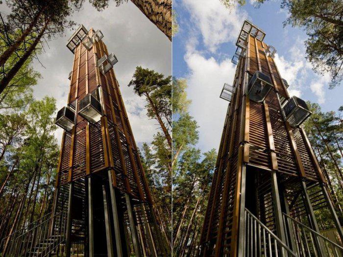 Смотровая башня посреди заповедника еще до момента окончательного подъема подарит вам немало интересных впечатлений. 40 метров подъема подарят вам корпус скворечников и галерею-клетку.