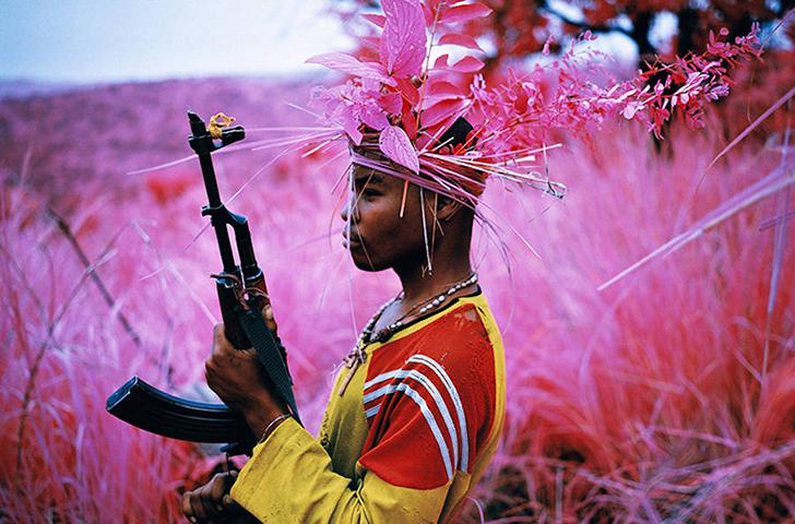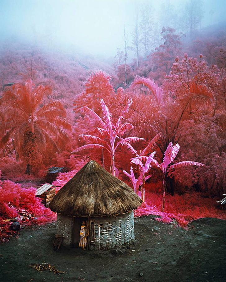 Используя зеленый фильтр, фотограф «исключает» из кадра все зеленые оттенки, и завораживающие африканские джунгли наполняются бесчисленными оттенками кроваво-красного, малинового, сиреневого и розового цветов.
