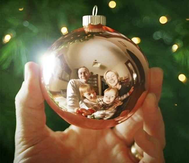Может, этот вариант посложнее, но результат того стоит. Все счастливое семейство, помещенное в елочной игрушке, — есть в этой задумке нечто метафоричное.