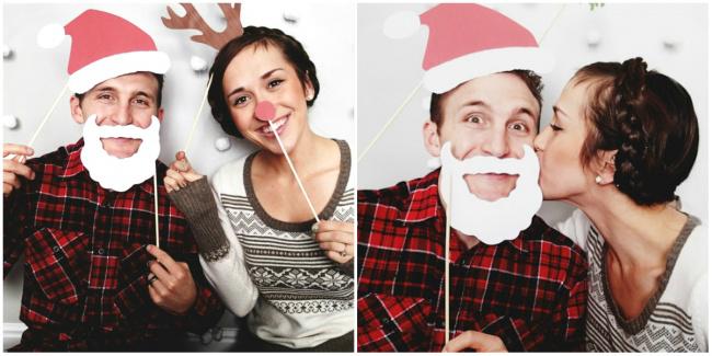 Сделать подобные масочки совсем несложно, а фото с ними получатся очень красочными. Отличная идея как для нового года с детьми, так и для вечеринки в кругу друзей. Вырежьте губки, шапочки, усики, рожки, все что только душе угодно и начинайте фотографироваться в разных амплуа.
