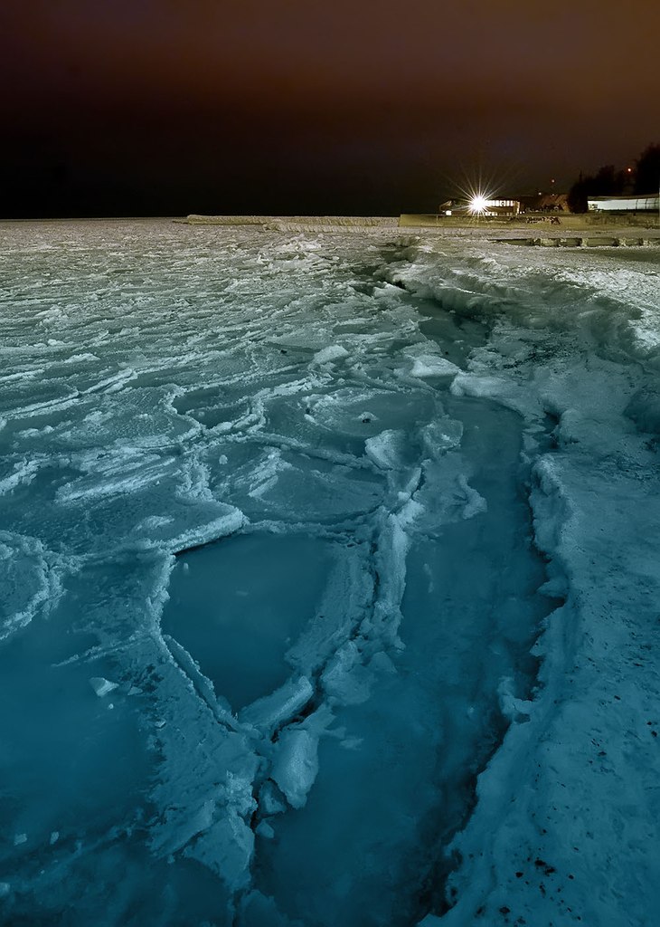 Льдом покрылись пирсы, на сотни метров простираются ледяные торосы.