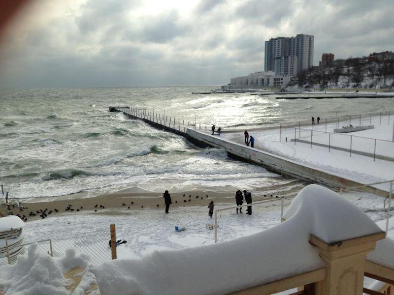Минувшей ночью, благодаря отсутствию ветра море замёрзло и покрылось льдом, превратив побережье в завораживающий парк ледяных скульптур. Наиболее морозоустойчивые одесситы наслаждаются природой уже с самого утра.