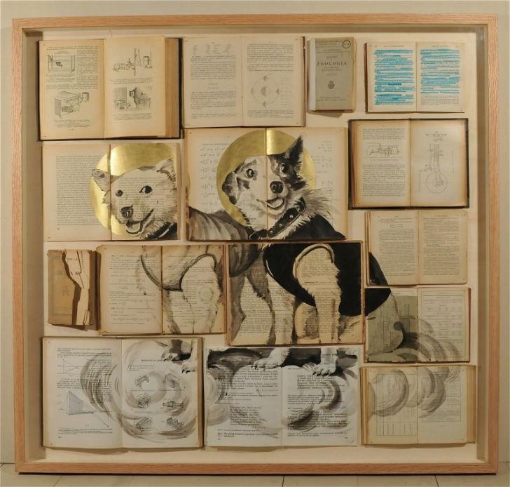 Художница Екатерина Паниканова рассказывает: «В моих работах я использую в основном подержанные книги, которые нахожу на блошиных рынках в Петербурге, Риме и других городах и странах, в которых бываю …