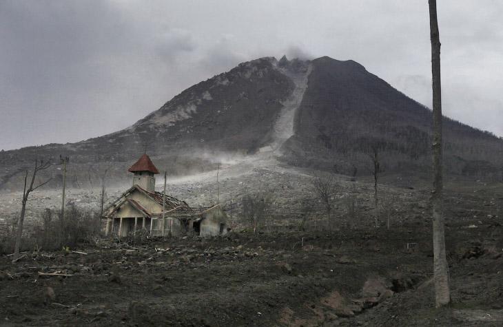 Большинство островов возникли в результате извержения вулканов. Смертоносная лава очень быстро засыхала и в Индийском океане появлялись новые атоллы и острова. Вся территория Индонезии находится в "Тихоокеанском огненном кольце". То есть, республика имеет одну из самых высоких тектонических активностей в мире. Извержения вулканов, цунами, землетрясения. Для индонезийцев это уже обыденность. Вашему вниманию представляется подборка снимков, на которых изображены деревни-призраки, которые пострадали от извержения мощных вулканов.