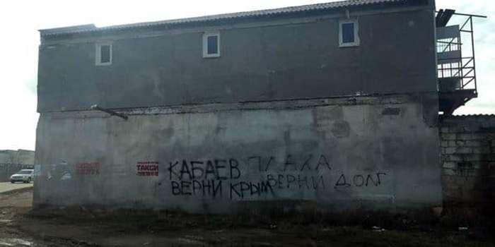На одном из домов Севастополя крымчане написали «Кабаев, верни Крым». Под именем «Кабаев» севастопольцы имели в виду Владимира Путина, которого уже не один год связывают слухи о романе с спортсменкой Алиной Кабаевой.