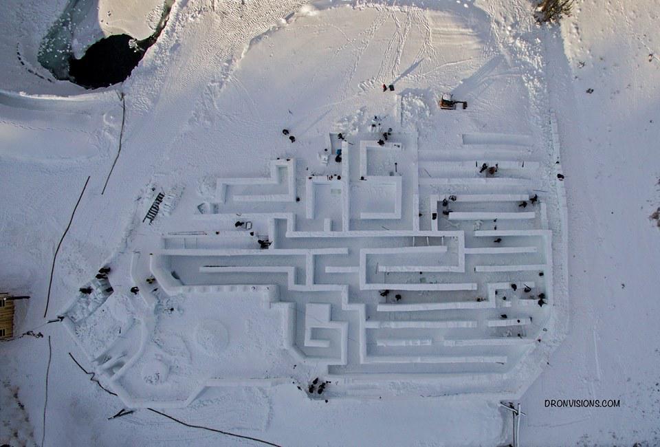 Лабиринт, полностью составленный из шестидесяти тысяч ледовых глыб, открылся для посещения в прошлые выходные. Внутри лабиринта, между стенами из ледовых блоков, были установлены всевозможные развлечения.