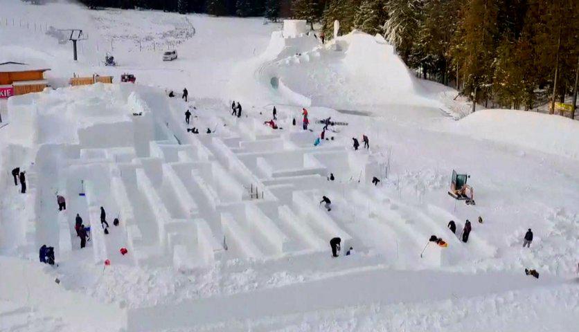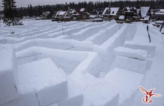 Необычный аттракцион предлагает Закопане горнолыжникам, решившим отдохнуть от спусков по заснеженным трассам, — уникальную ледяную инсталляцию в виде лабиринта.