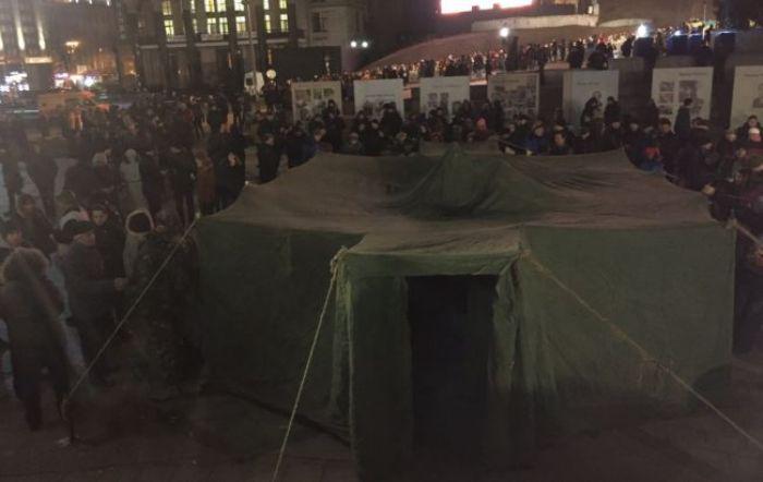 Напомним, в Киеве на Майдане Незалежности активисты установили большую военную палатку.