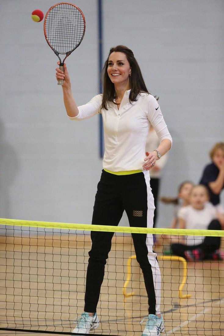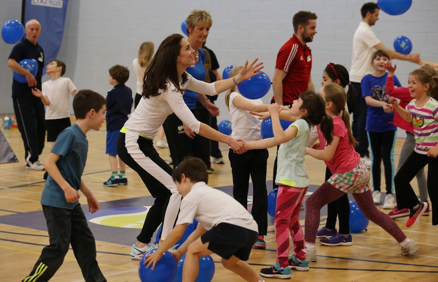 Кейт Миддлтон приехала в Эдинбург с визитом в одну из детских школ. Герцогиня с удовольствием приняла участие в спортивных мероприятиях — мама двоих детей поиграла с учениками в теннис, побегала и попрыгала через небольшие препятствия и понаблюдала за первоклассниками, которые весело подкидывали воздушные шары под музыку.