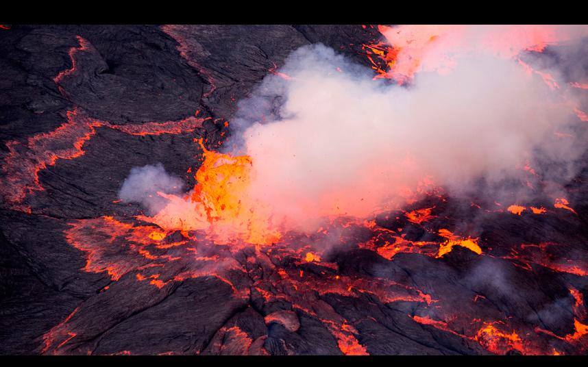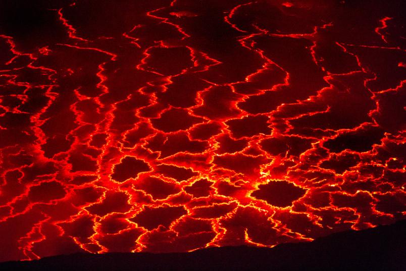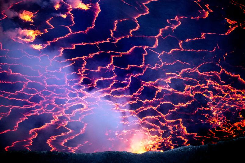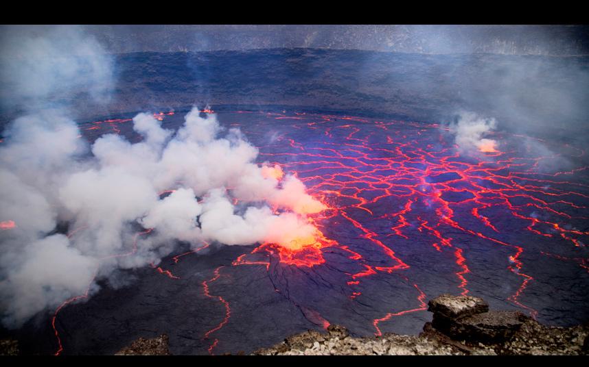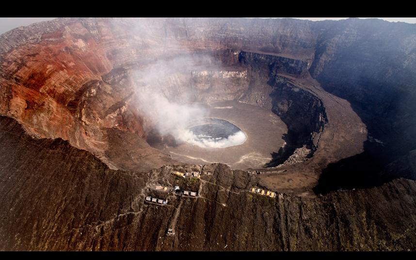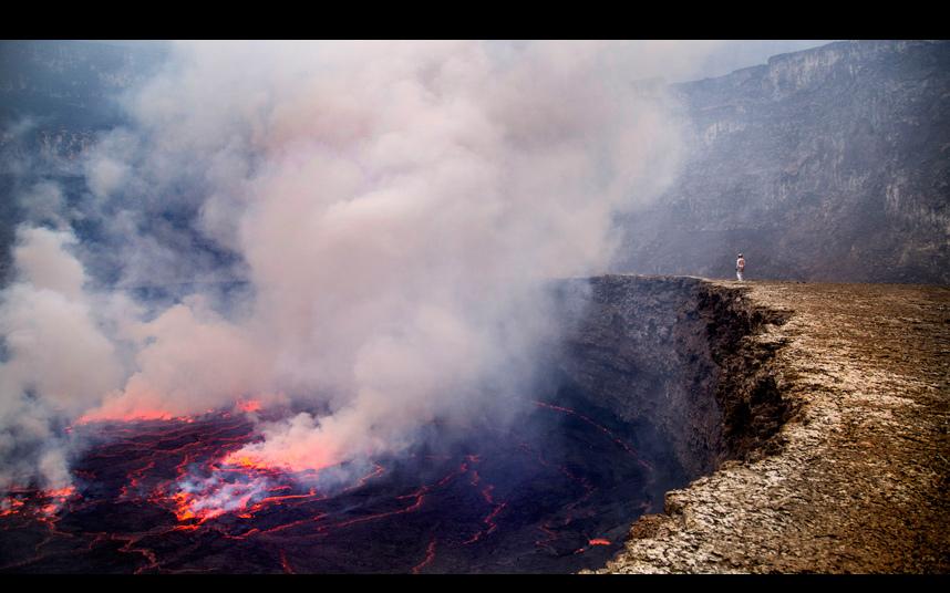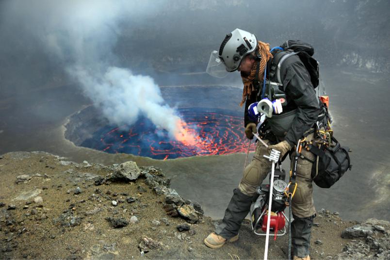 Брэдли совершил это рискованное путешествие в компании ещё пяти исследователей. На этом снимке один из исследователей стоит на краю кратера на максимально близком расстоянии от лавового озера.