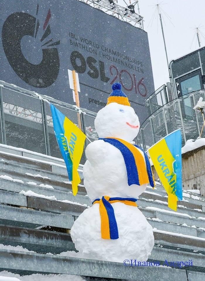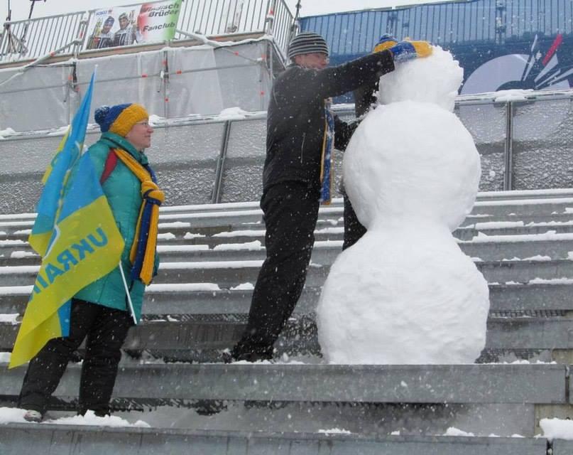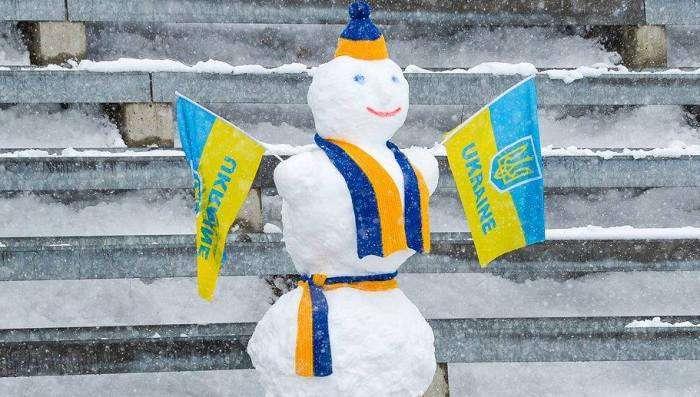 В Норвегии украинские болельщики слепили огромного снеговика (ФОТО)
