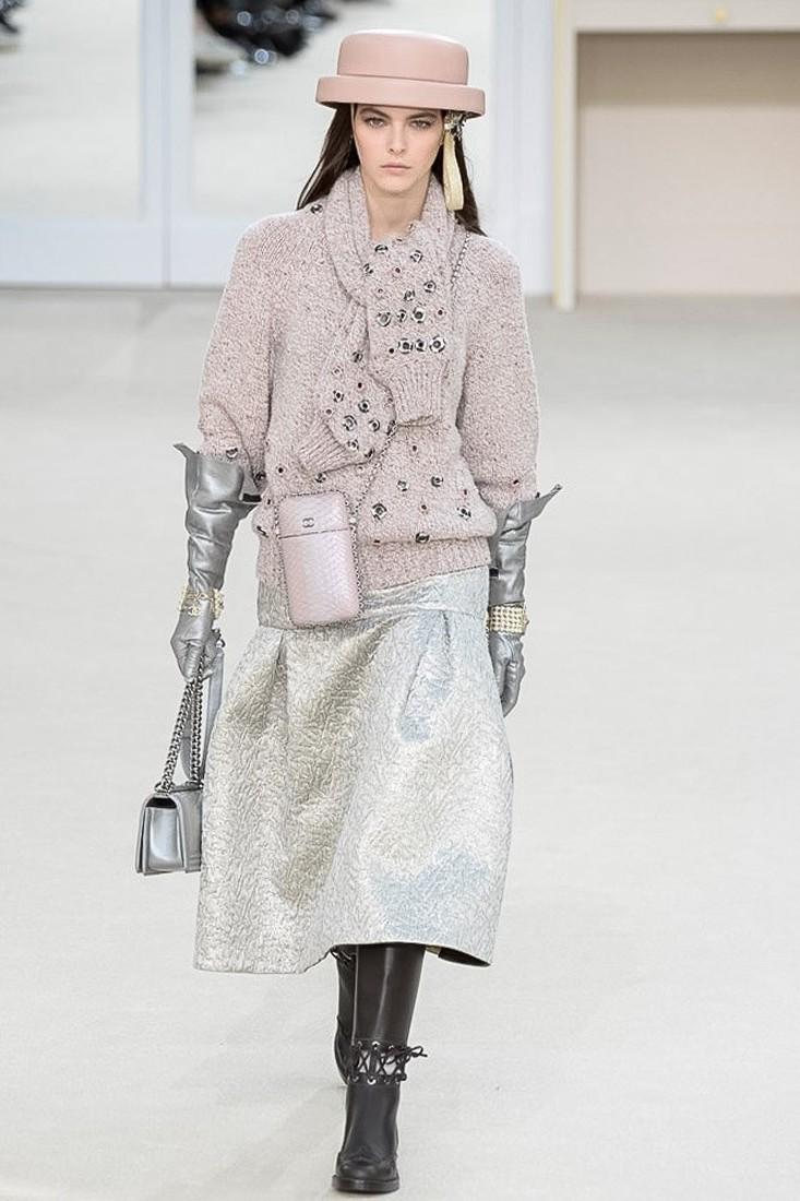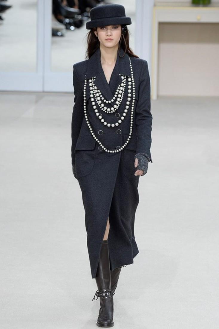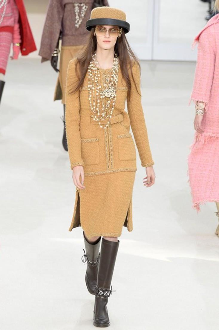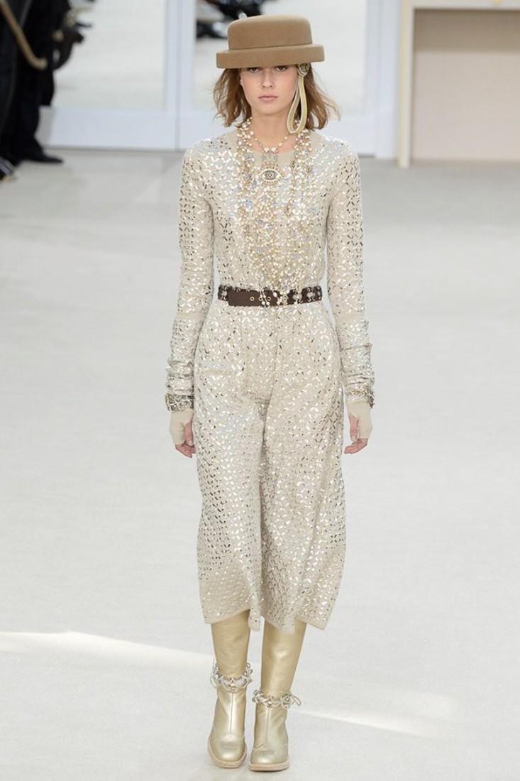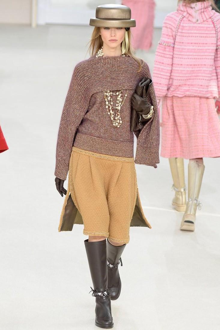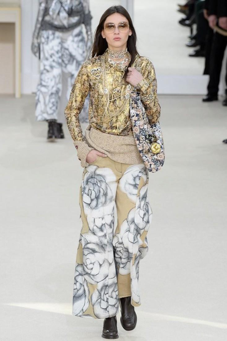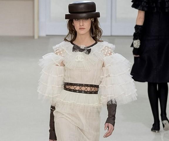 Столь любимые самой Мадемуазель Шанель камелии на этот раз появились в коллекции не только в виде украшений, но и как принты на тканях. Отдельного внимания заслуживают шляпки. Что-то подобное носили в 60-х. Лагерфельд лишь добавил к ним жемчужные подвески и кожаные детали.