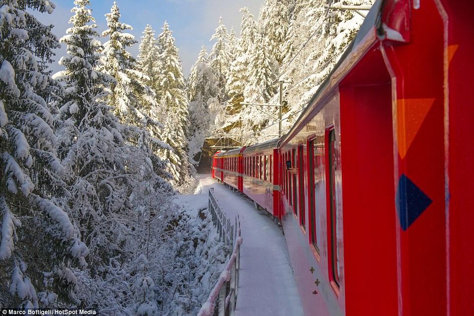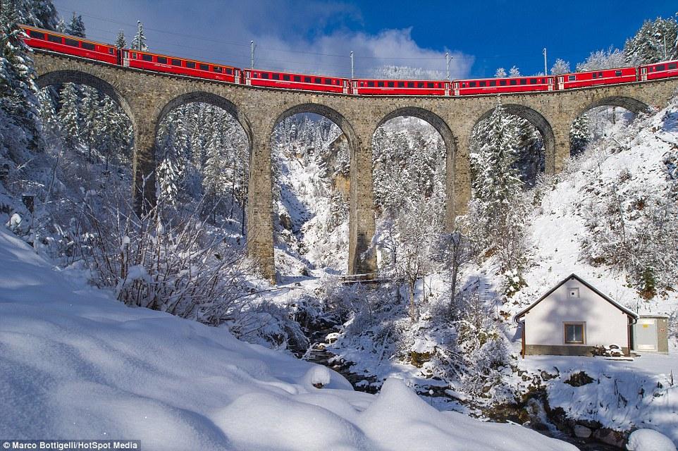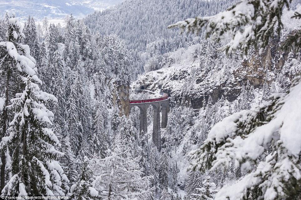 По словам фотографов, самой впечатляющей частью их поездки оказался вид поезда на виадуке Ландвассер. Поезд появляется из прорубленного в горе тоннеля и проезжает по виадуку высотой 65 метров.