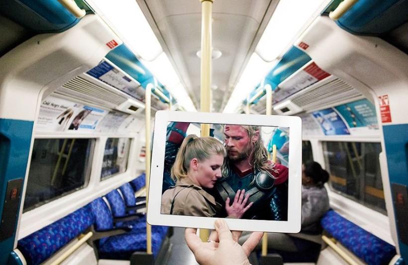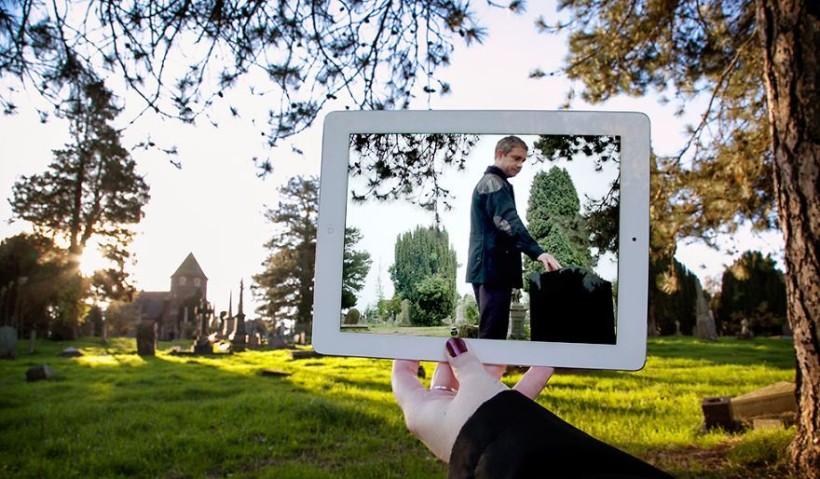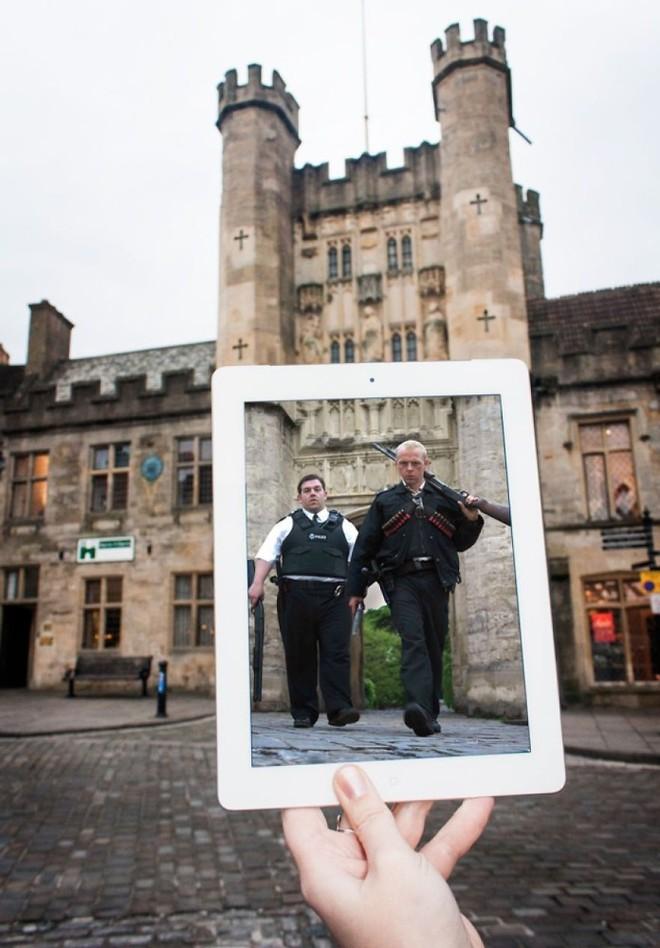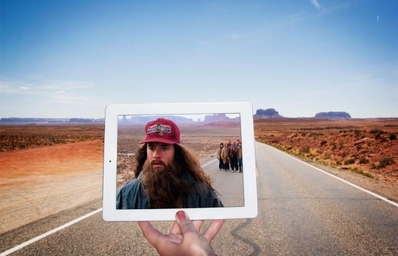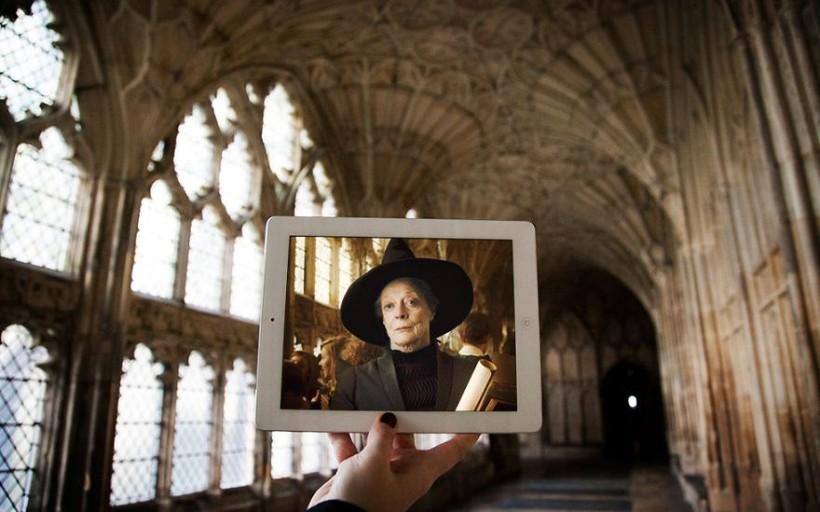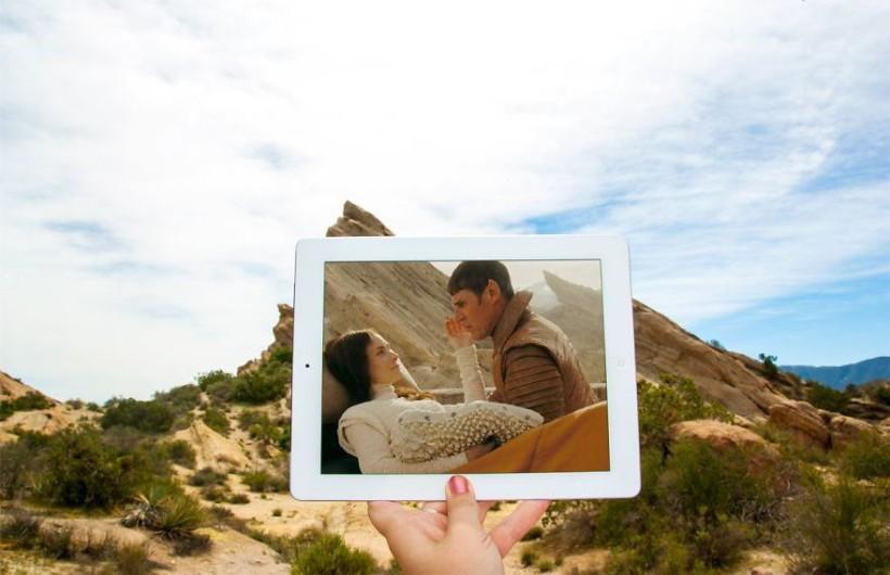 Когда девушки достигают своей цели, они ставят на iPad момент из сериала или фильма и делают фотографию в месте, где проходили съемки.