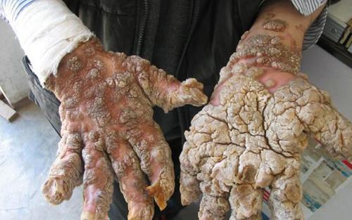 Затем они медленно стали распространяться на всю ногу. А позже, странные бородавки появились и на руках мальчика. В течение многих лет парень беспомощно наблюдал за тем, как преобразовываются его конечности.