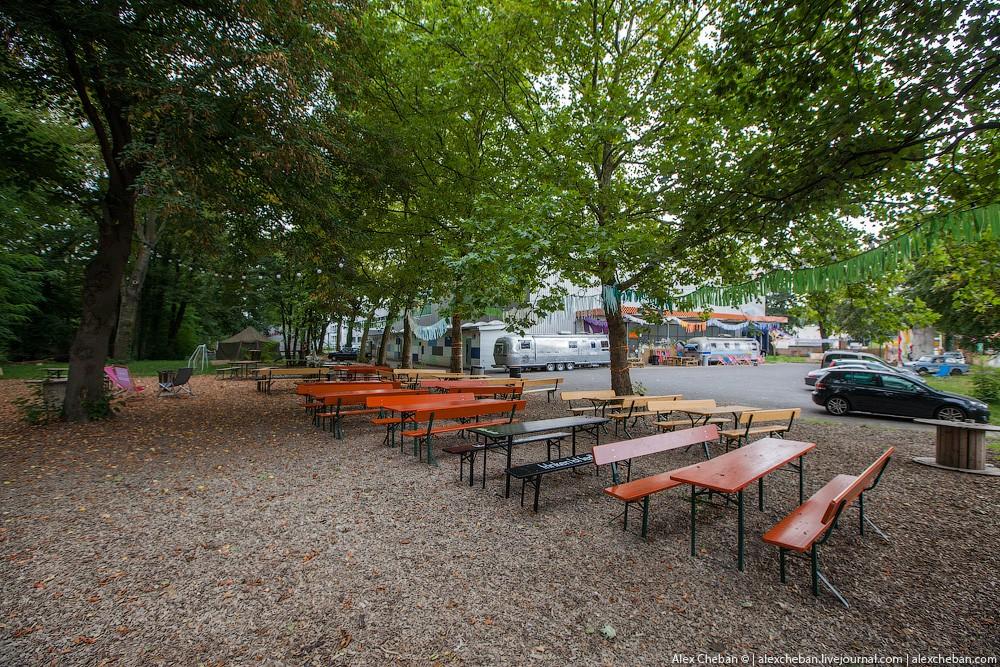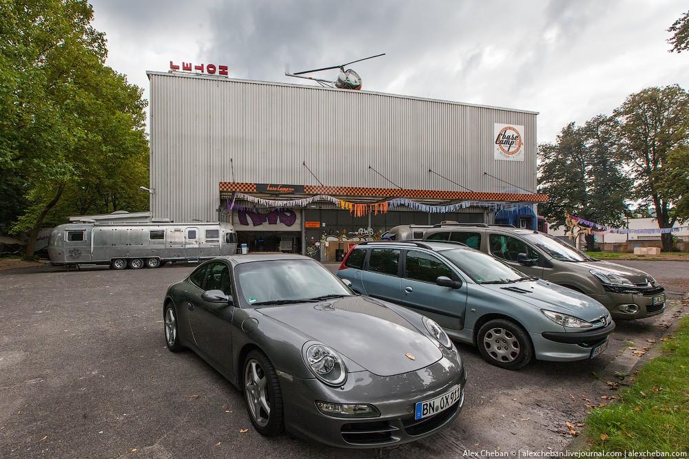 У входа на территорию нас встречают два оригинальных фрагмента Берлинской стены и легендарный «Трабант».