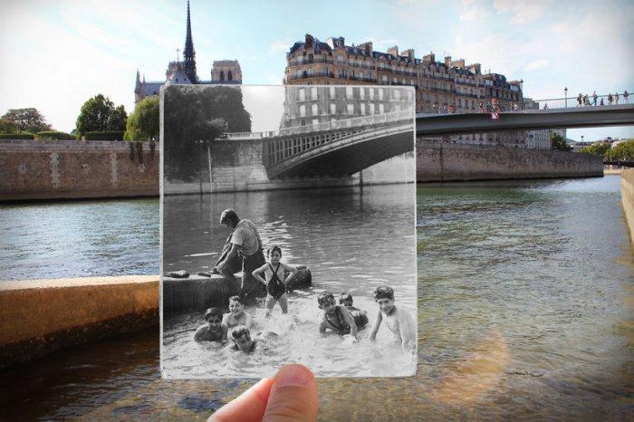 После этого, накладка старого снимка на фотографию из нынешнего времени и демонстрировала нам параллельность и взаимосвязь времен. Француз недавно издал книгу под названием «Paris, Fenêtres sur l'Histoire».