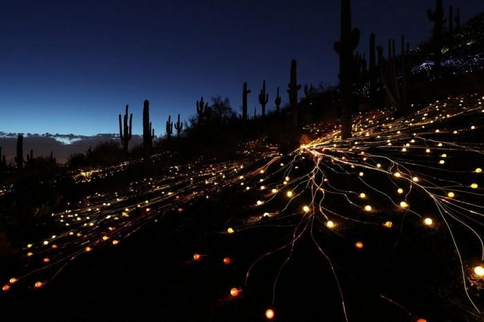 «Я хотел создать поле из ростков, которые, подобно семенам, спящим в сухих почвах пустыни, будут распускаться с наступлением сумерек под сияющим покрывалом звёздного неба», – рассказывает Манро.