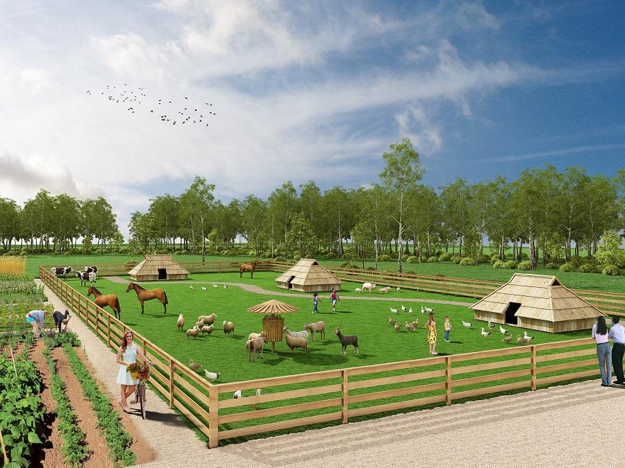 Жилье для гостей выполнено в стиле пастушьих хижин, расположенных на плато. В магазинах и на рынке они смогут приобрести продукты, выращенные в садах окружающих ферм.