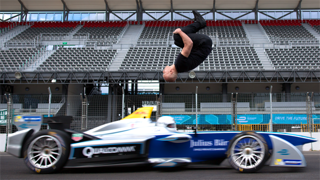 Каскадер вслепую прыгнул через мчащийся болид (ВИДЕО)