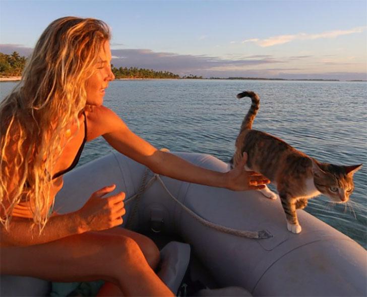 Лиз подобрала Амелию, когда та была 6-месячным котенком, и с тех пор не расстается с ней. Очевидно, кошка стала настоящим морским волком — она привыкла к воде, качке и лодке. А главное, она научилась доверять Лиз.