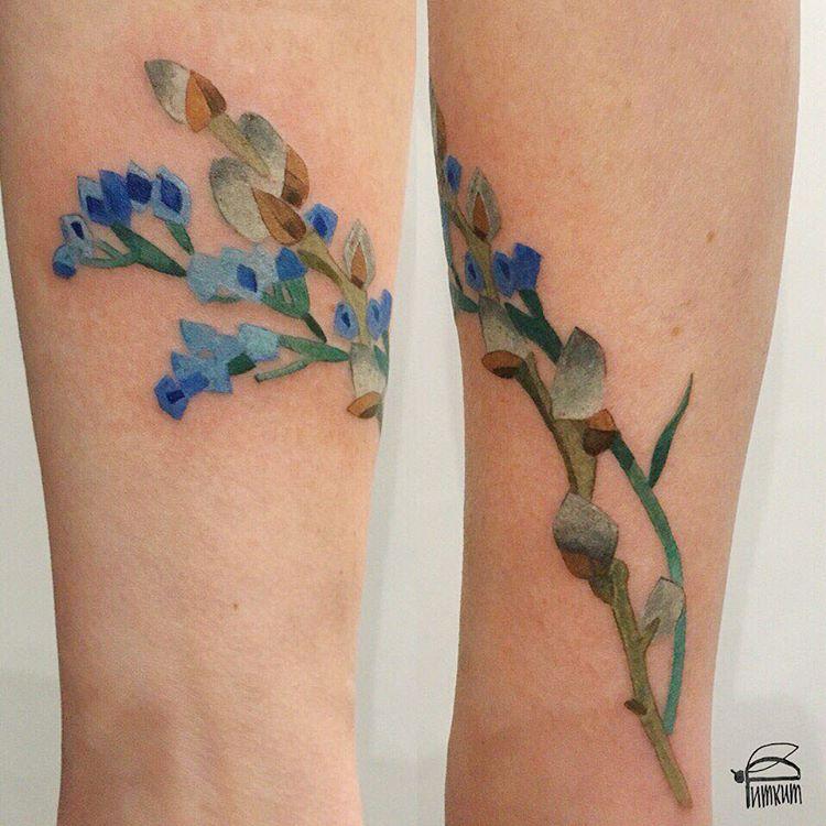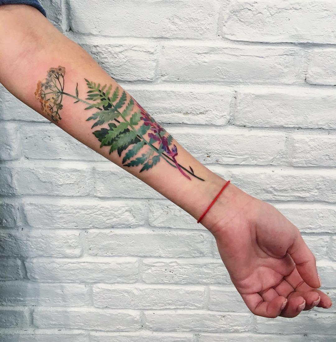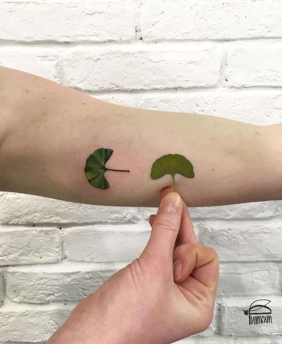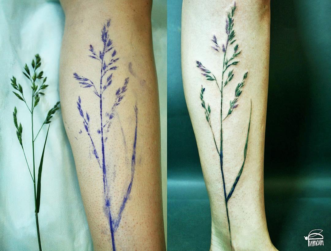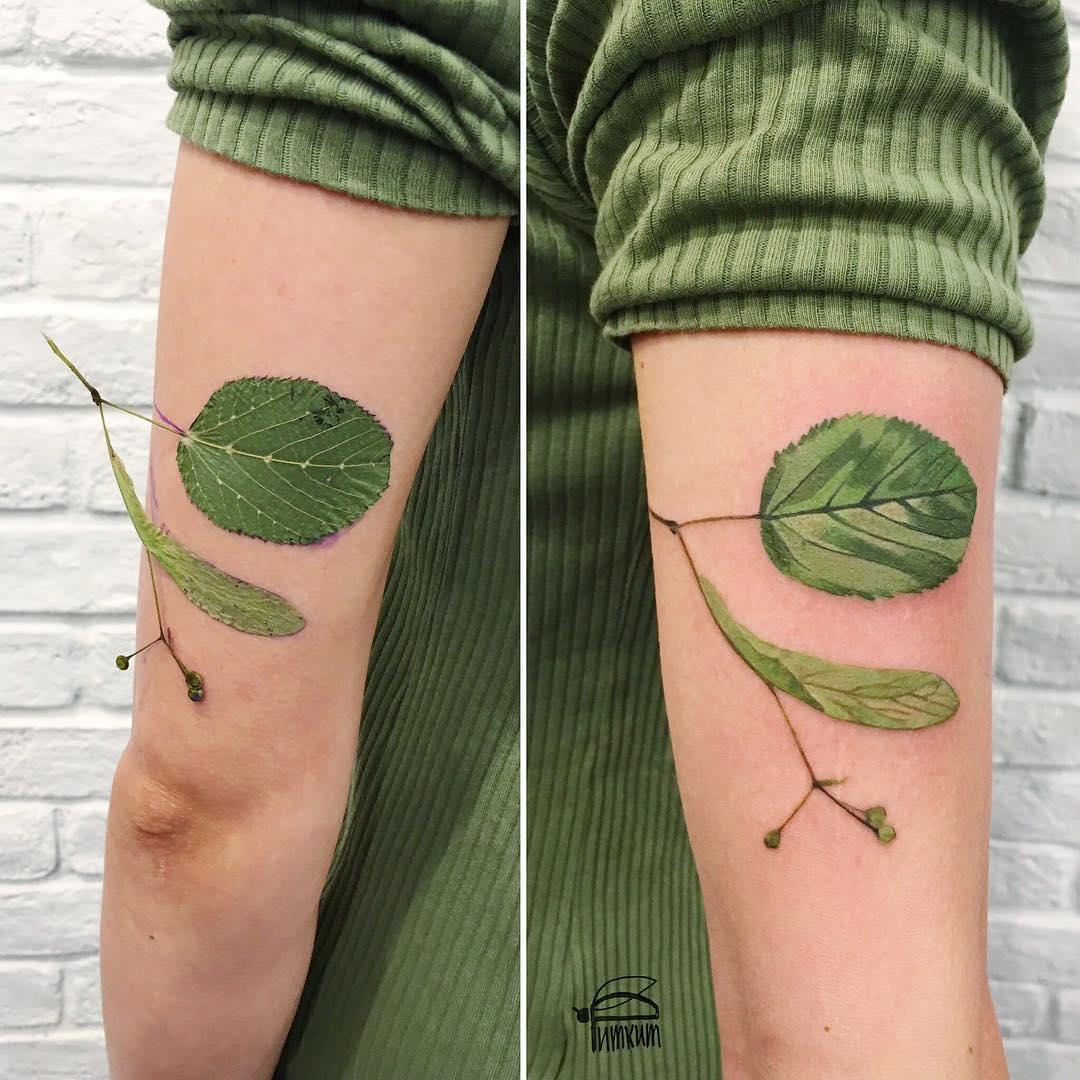 Для создания каждой татуировки Рита прикладывает к телу растение, которое перед этим окунает в чернила. И по получившемуся отпечатку художник уже набивает тату.