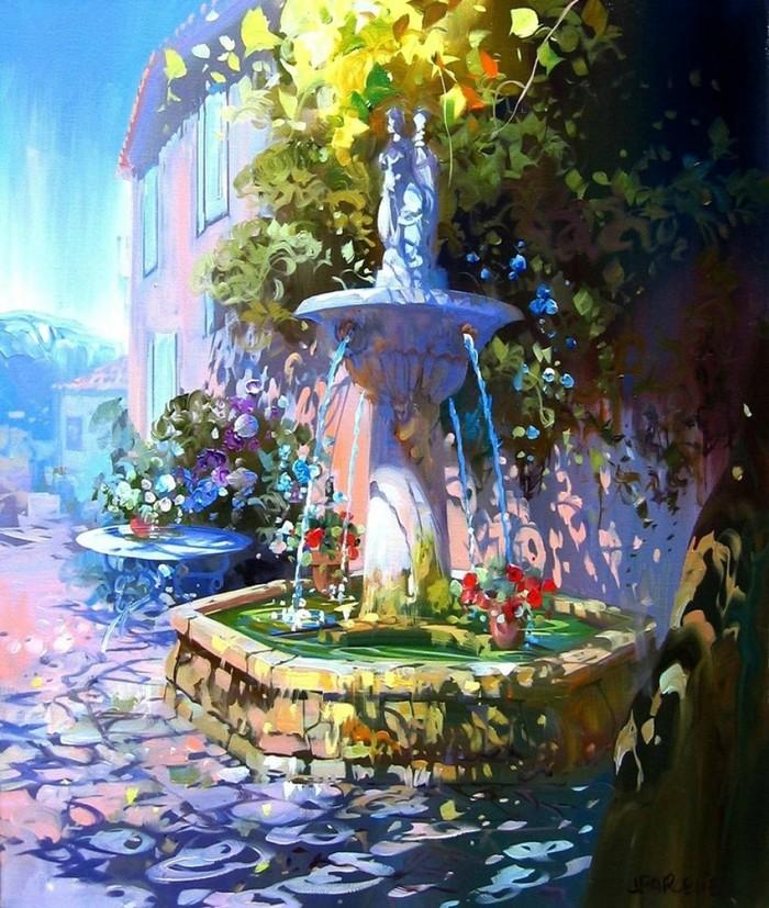 Его полотна, излучающие мягкий свет, как будто нарисованы не красками, а сотканы из тысячи солнечных зайчиков.