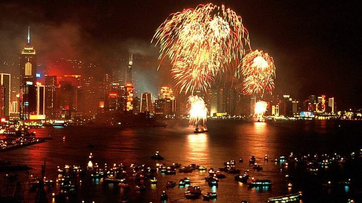 Хозяйку года традиционно встретили грохотом петард и хлопушек, а также всемирно знаменитыми фейерверками.