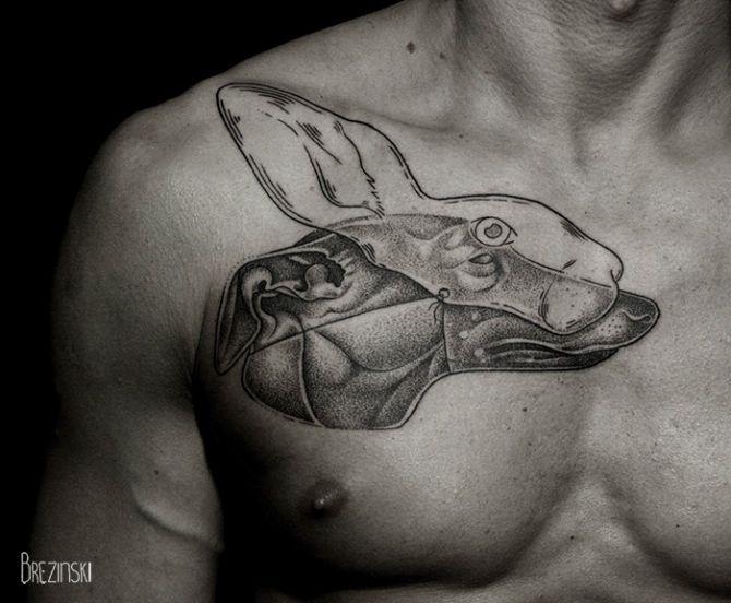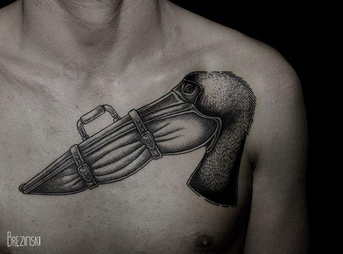 Обосновавшийся в Санкт-Петербурге белорусский татуировщик и художник-иллюстратор специализируется на "точечном" и "черном" боди-арте. Его проекты часто имеют сюрреалистическую тематику, почти по Дали, а использование точечной работы создает почти 3D эффект оттенения, что не представляется возможным с другими методами татуировки. Его татуировки, являющиеся преимущественно монохромными, и с простыми цветами делают его произведения еще более поразительными. Бжезинский накопил почти 50 последователей в Instagram, и это легко понять, глядя на фотографии ниже.