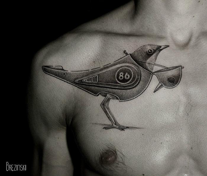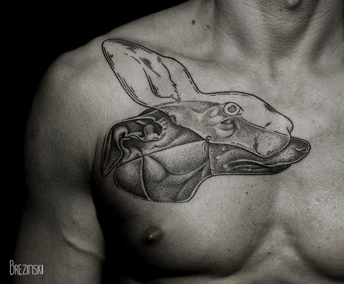 Но это именно та техника, в которой татуировщик Илья Брезинский создаёт свои сюрреалистичные татуировки.