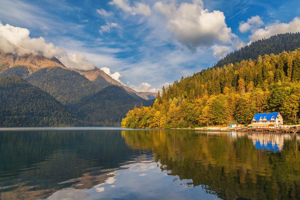 Это невероятно живописные горы, это буйство красок южных цветов, это ароматы магнолии, кипарисов и олеандров, это прозрачные горные реки и ручьи. Это озеро Рица — высокогорное озеро, сказочно красивое, волшебное.