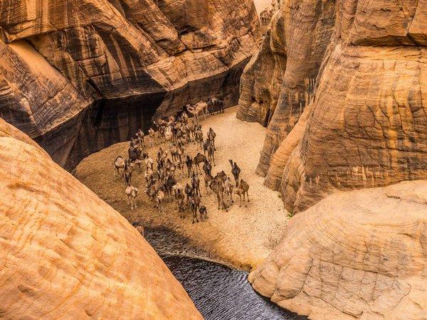В пустыне Сахара есть особая форма естественных водоемов, которая называется Гельта. Гельты могут образовываться в результате сильных дождей, наполняющих водой естественные углубления в скалах. Есть так же гельты, в которых, благодаря подземным источникам, постоянно поддерживается достаточно высокий уровень воды. К одним из таких пустынных водоемов относится и Гельта д’Аршей, располагающаяся на плато Эннеди на севере Республики Чад.