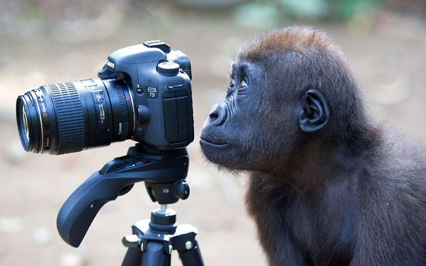На дереве он оставил свою камеру, спрятался неподалеку и наблюдал за поведением приматов. Мартышки не заставили долго ждать – буквально через несколько минут они освоили новую профессию. Одна из них начала пристально изучать камеру, сделав несколько снимков.