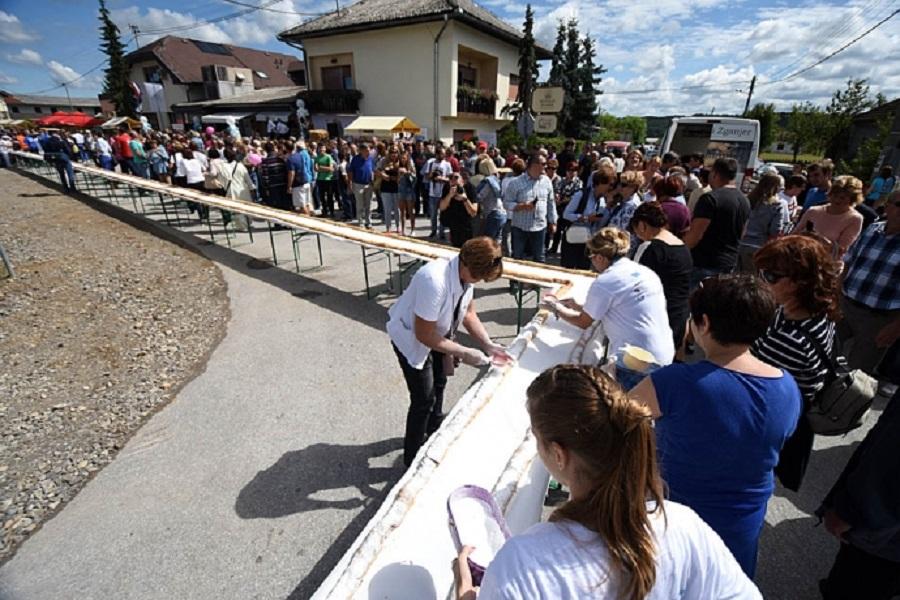 Прежний официальный рекорд поставили бельгийцы, которые испекли пирог длиной 750 метров. Хорватский город Биоград испек позже штрудель длиной 1200 метров, но у него не получилось попасть в Книгу рекордов Гиннесса.