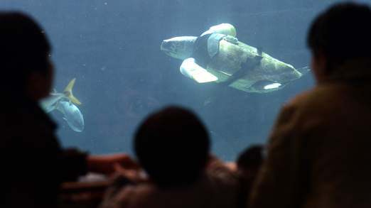 Морская черепаха по кличке Ю из японского океанариума в городе Кобе получила уникальный набор протезов для своих поврежденных плавников.