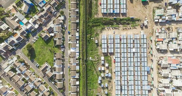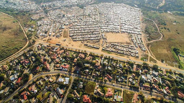 С высоты птичьего полета он сфотографировал границы внутри таких городов, как Кейптаун, Йоханнесбург и других.