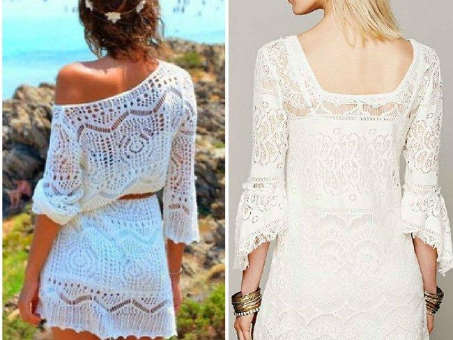 Очень стильно будут смотреться платья, вязка которых больше напоминает макраме. Дизайнеры советуют совмещать разные цвета и фурнитуры, играть с необычным кроем и так далее.
