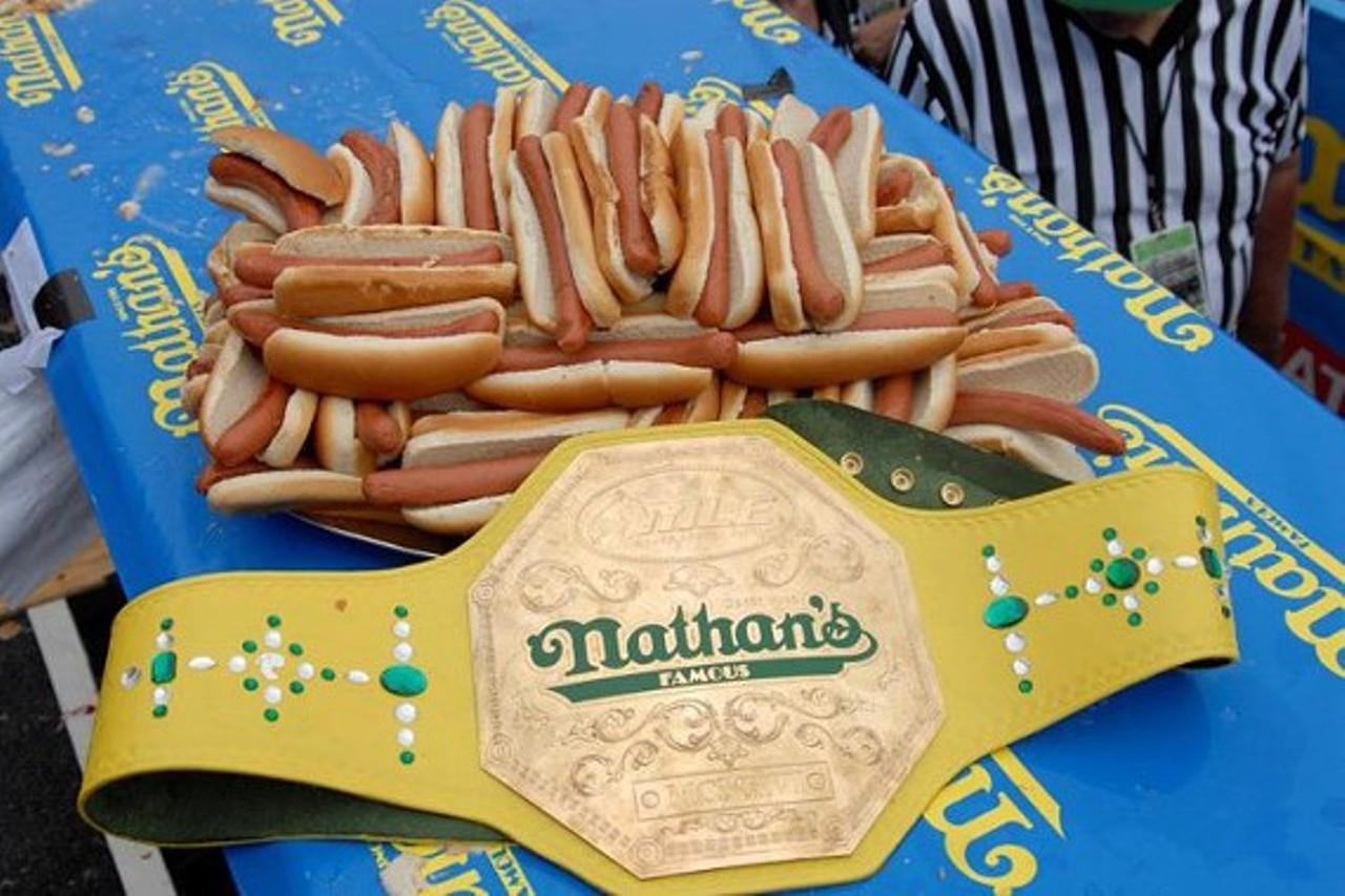 По традиции конкурс проходил в Нью-Йорке на набережной Кони-Айленд. Джоуи Честнат чемпионом по поеданию хот-догов стал в девятый раз, до прошлого года он восемь лет подряд выигрывал конкурс, а в прошлом году его обошёл соотечественник Мэтт Стоуни, которому за десять минут удалось съесть 62 хот-дога.