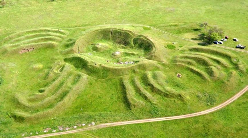 Всего в 80 км от Днепра рядом с городом Павлоградом есть удивительное поле. Зовется оно Мавринской площадью. На поле — ряд валов. Если взглянуть сверху, это не просто насыпи, поросшие травой, а настоящее произведение искусства! Одни говорят, что валы напоминают по своим очертаниям краба, другие — паука.